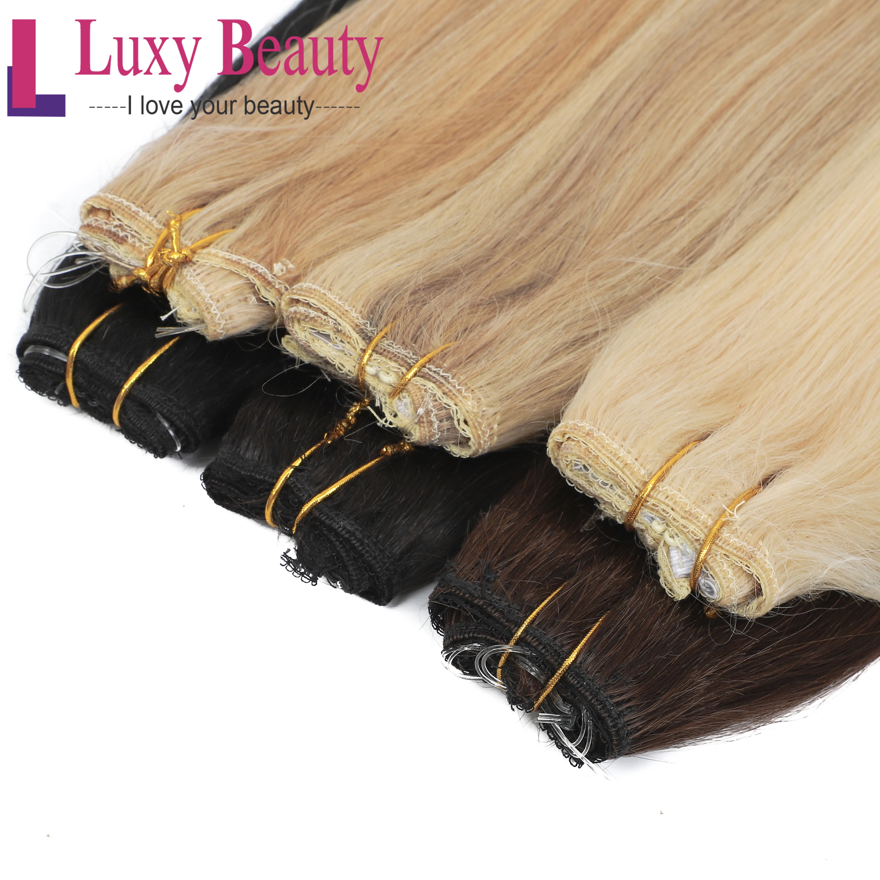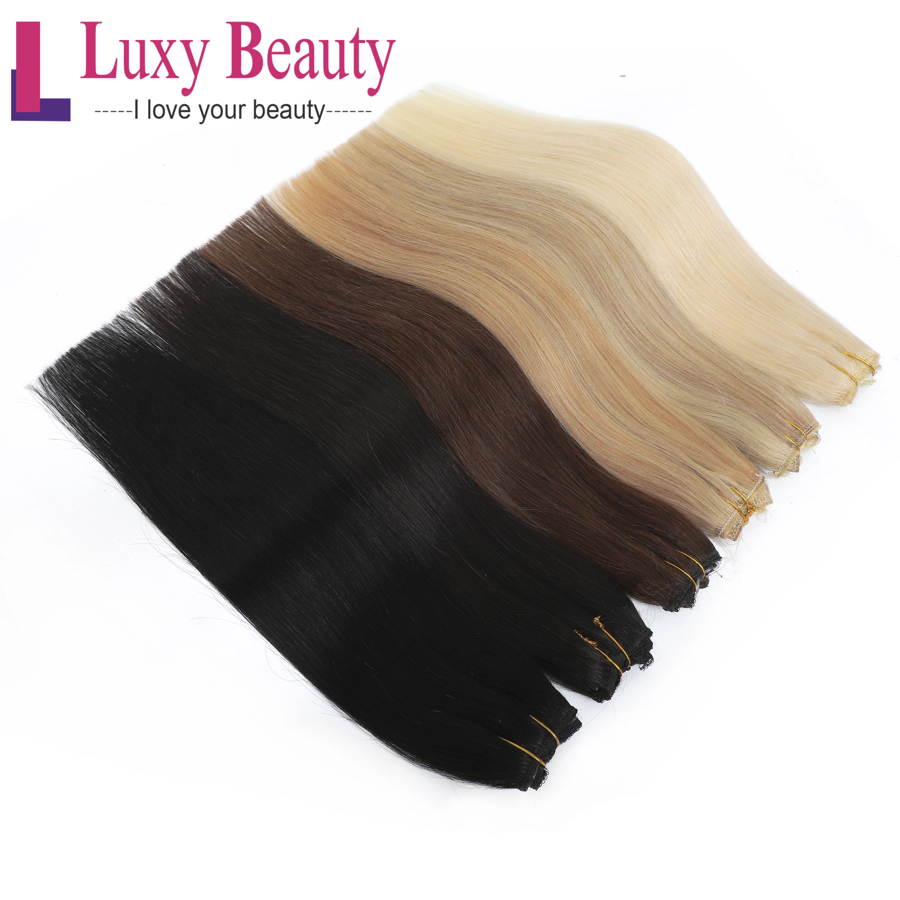 .image for LuxyBeauty Flip Hair Extension Straight 14" 18" 22" Remy Human Hair Machine Made Weft Fish Line Hai