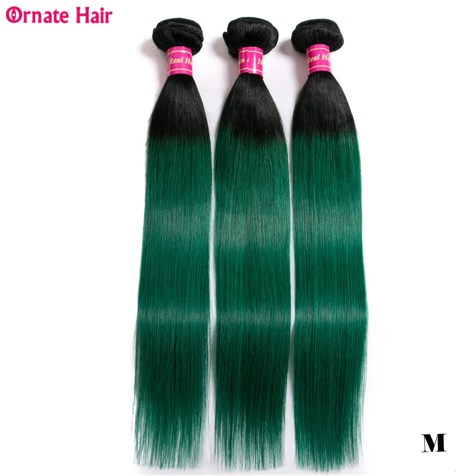 Related Product for Ombre Colored Hair Bundles 100% Human Hair Extension Brazilian Straight Hair Bundles T1b/green Orna