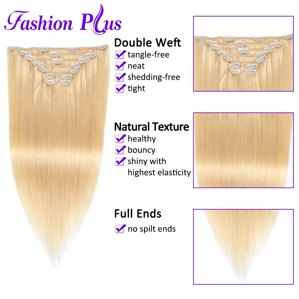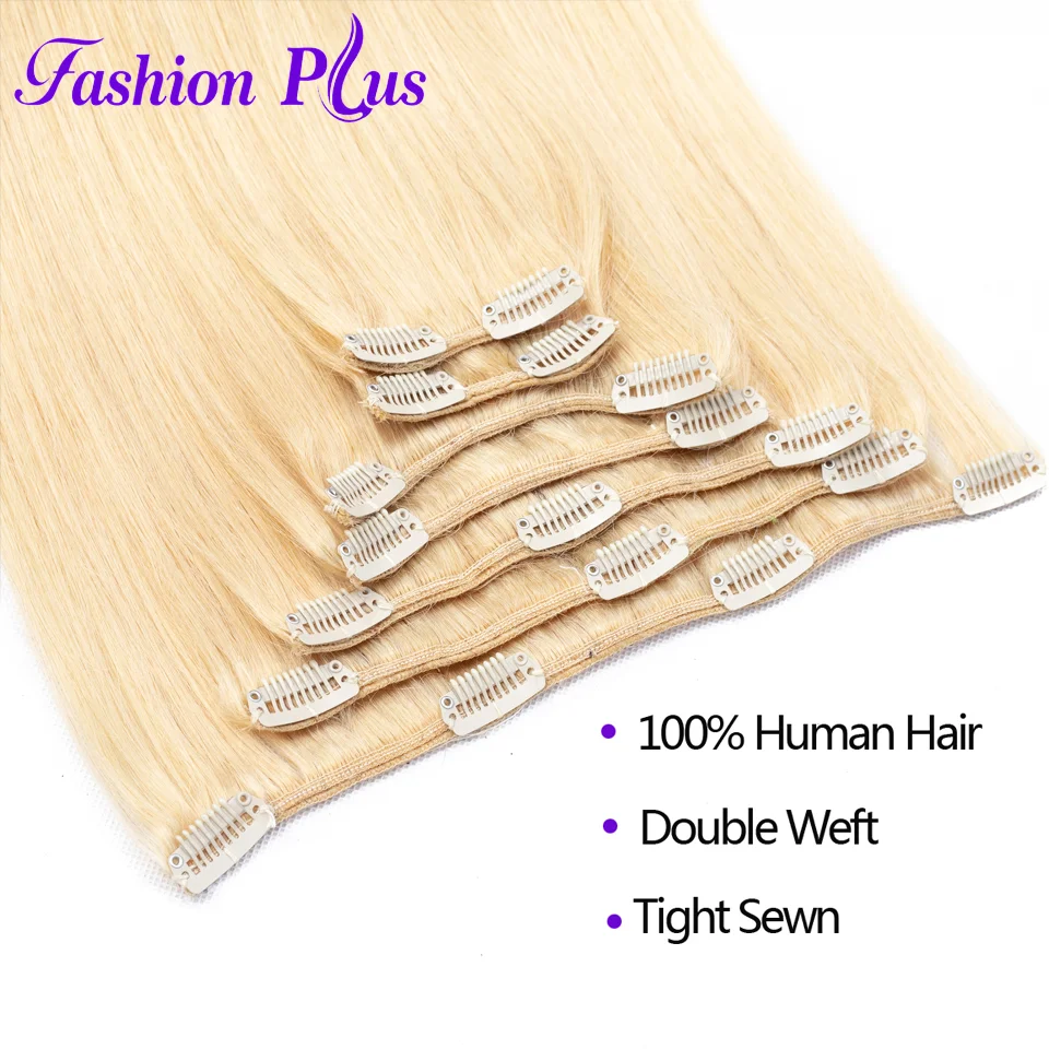 Related Product for Fashion Plus Clip In Human Hair Extensions Machine Made Remy Straight Natural Hair Extension Full H