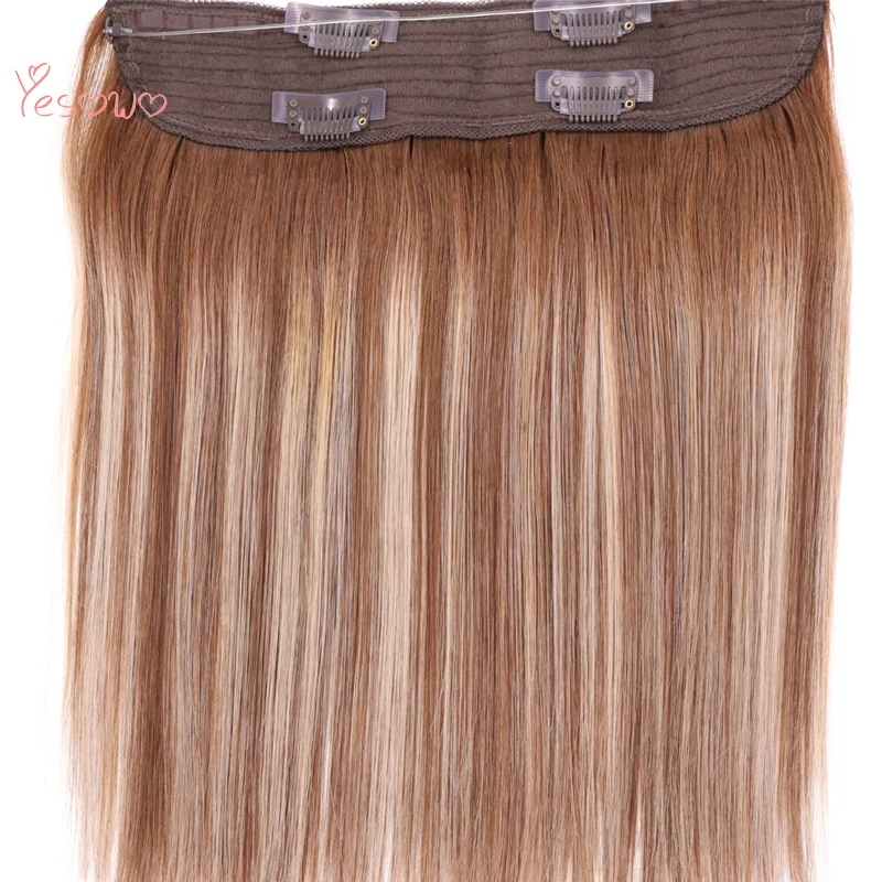 Related Product for Yesowo 4/27/4# Highlight Halo Hair Silky Straight Brazilian Remy Human Hair Pieces Real Hair Clip I