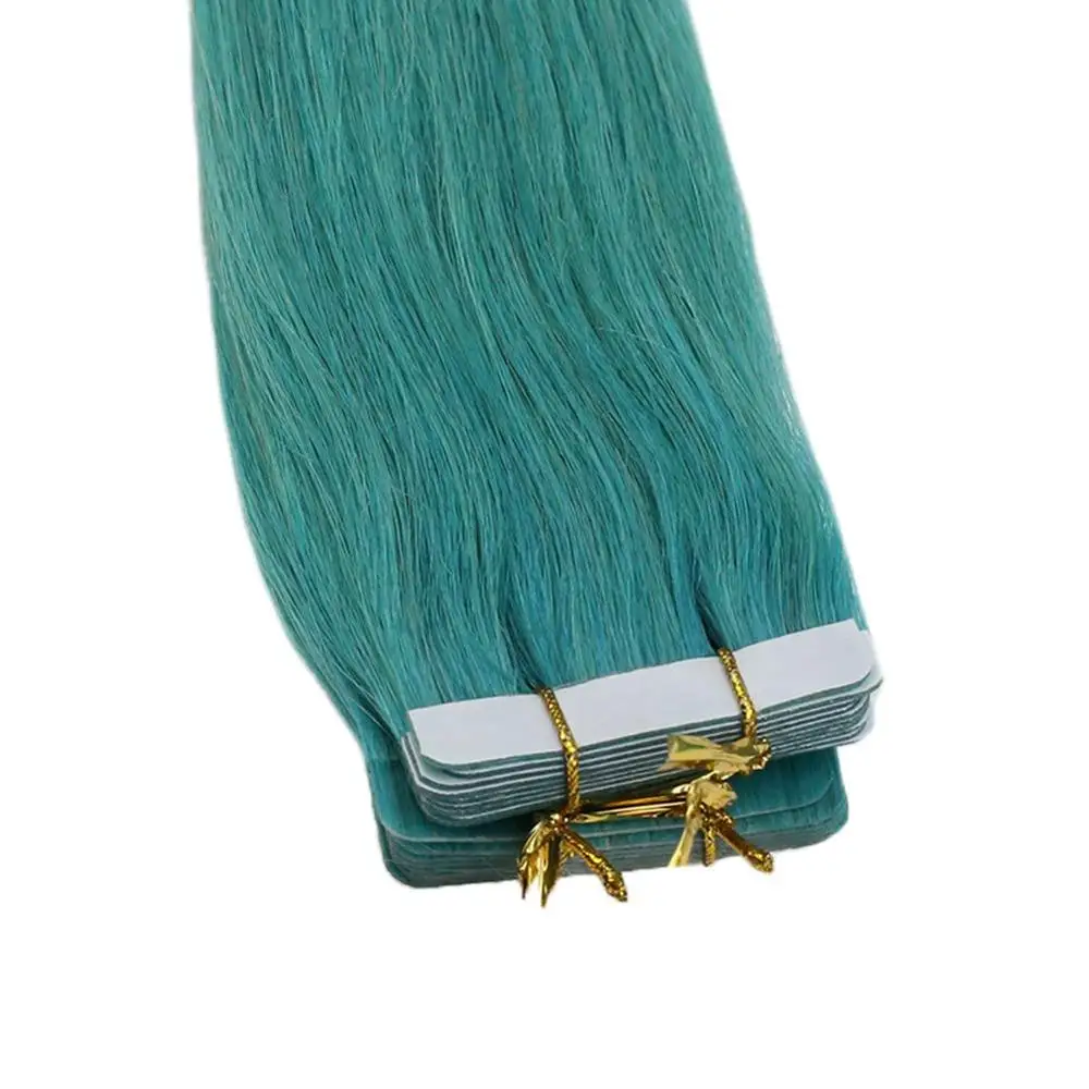 .image for VeSunny Adhesive Tape in Hair Extensions Seamless 100% Real Human Hair Teal Green Machine Made Remy