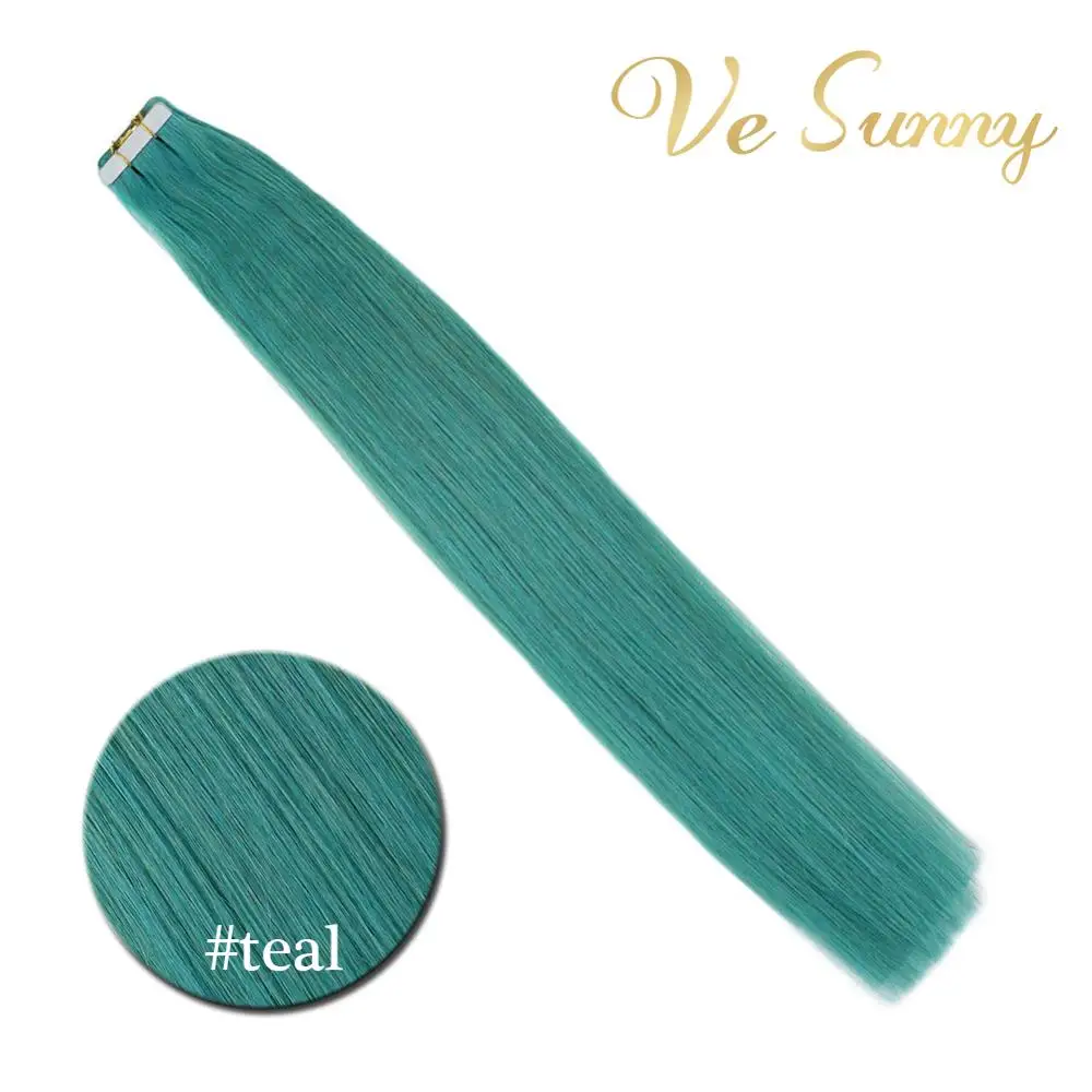 Good Chance for VeSunny Adhesive Tape in Hair Extensions Seamless 100% Real Human Hair Teal Green Machine Made Remy