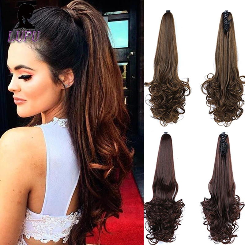 Good Price for LUPU 24" Black Brown Long Curly Ponytail Claw Clip In Synthetic Hair Extensions Heat Resistant Fibe