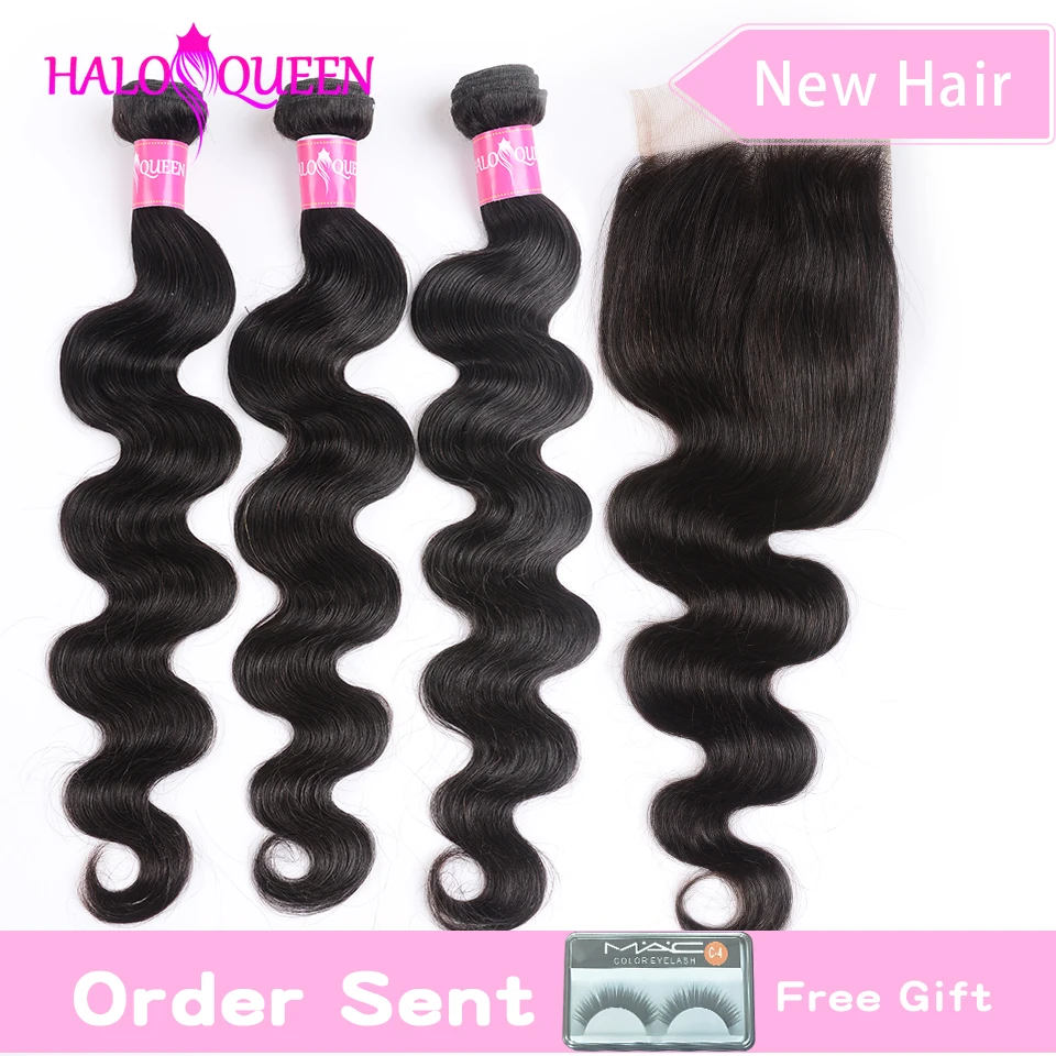 Good Price for HALOQUEEN Hair Brazilian Body Wave Bundles With Closure non-remy Hair Bundles With 4x4 Lace Closure