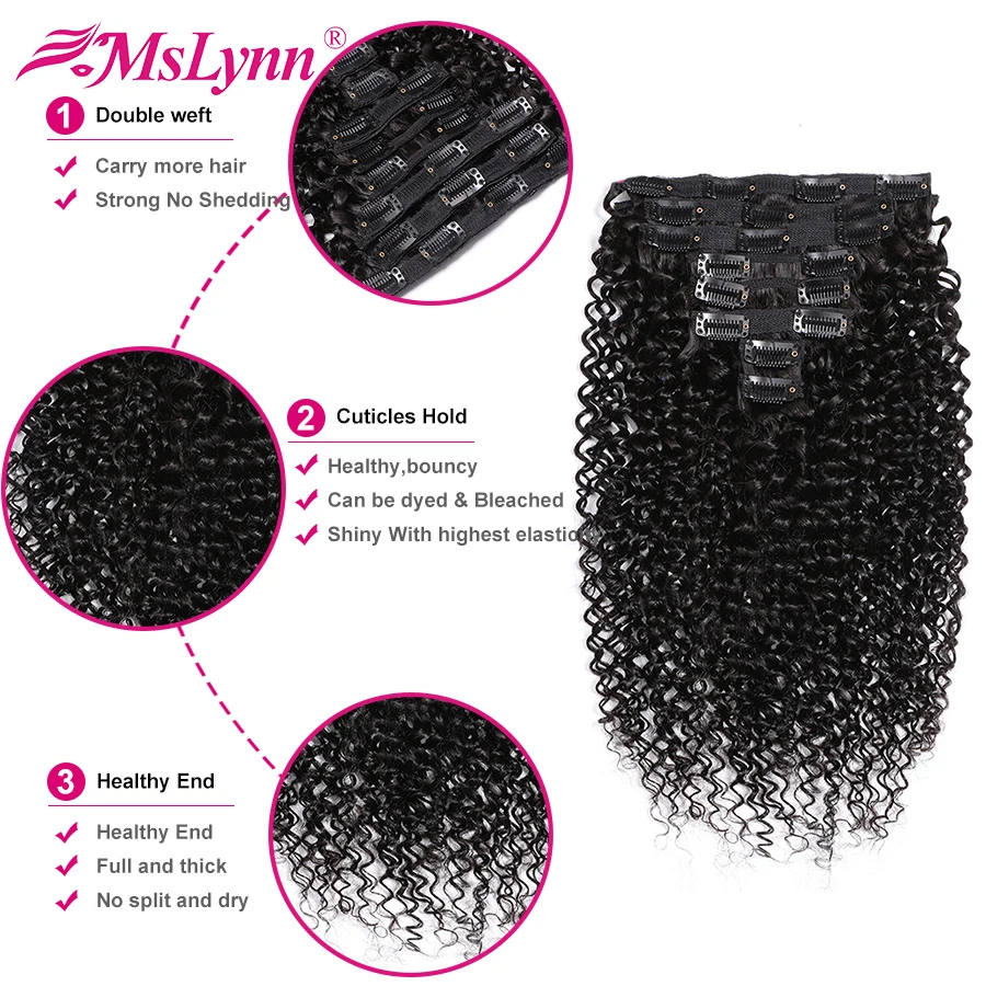 Related Product for Kinky Curly Bundles Peruvian Hair Bundles Clip In Human Hair Extensions 8 Pieces/Set 120Gram Mslynn