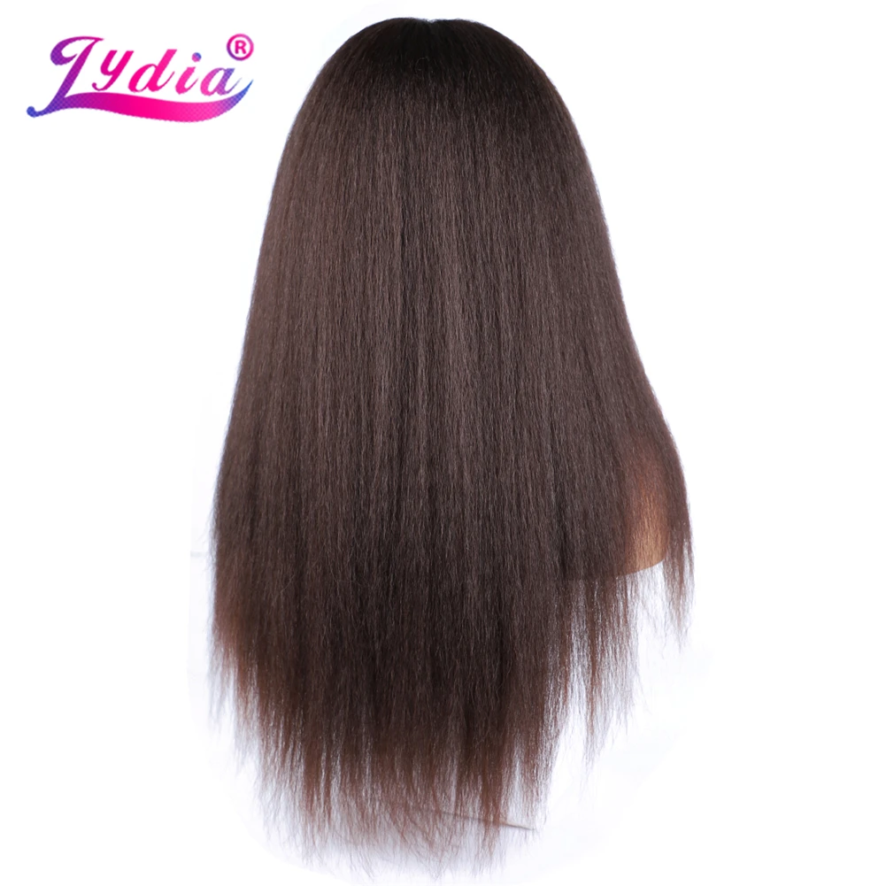 Lydia Long Kinky Straight Synthetic Hair Wigs For African American Women Nature Black 16-24 Inch Kanekalon Afro Wig