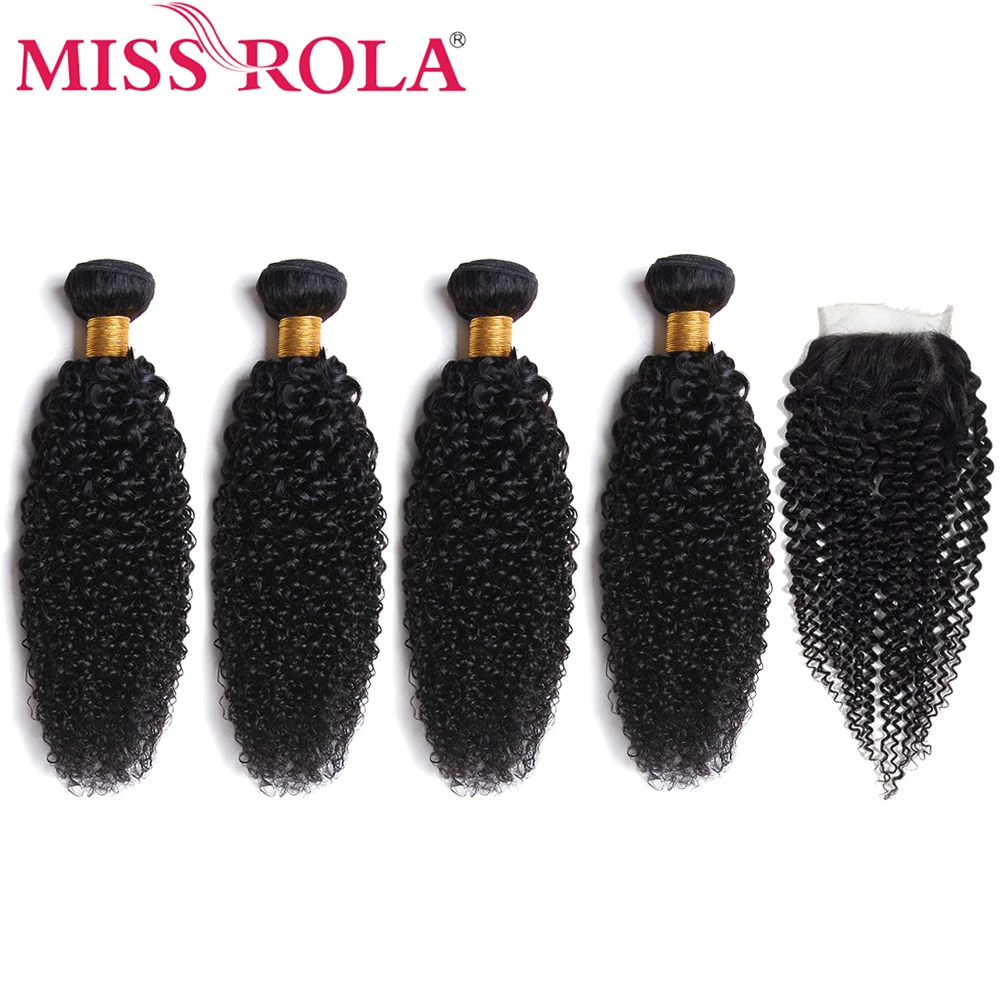 Miss Rola Hair Brazilian Hair Weave 100% Human Hair Kinky Curly 3 Bundles With Closure Non Remy Hair Extensions Natural Color