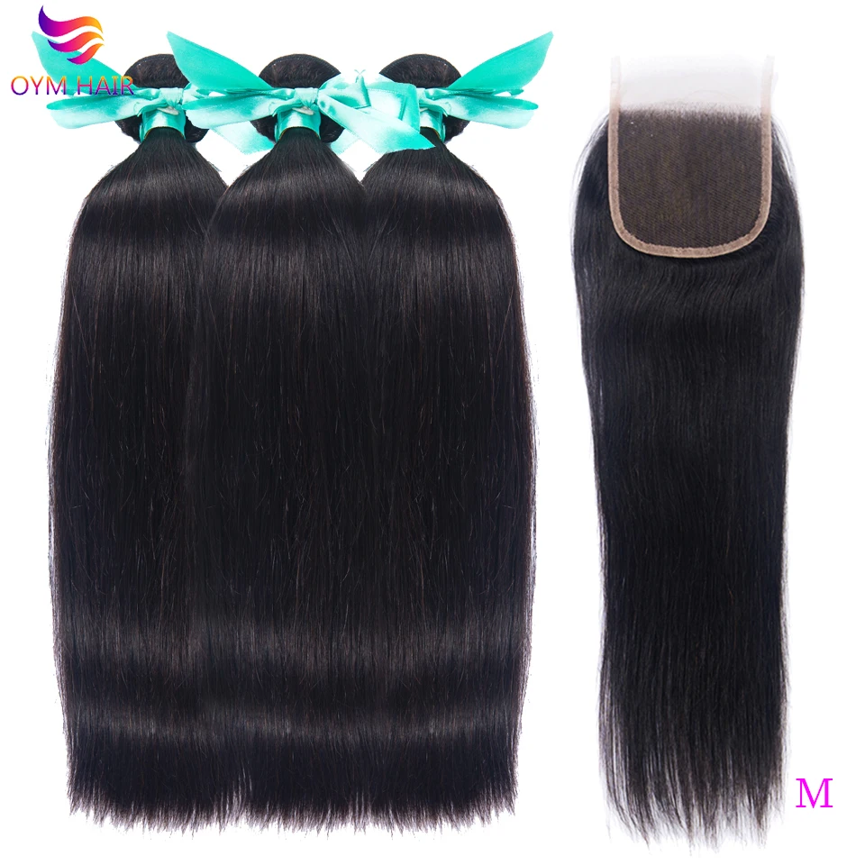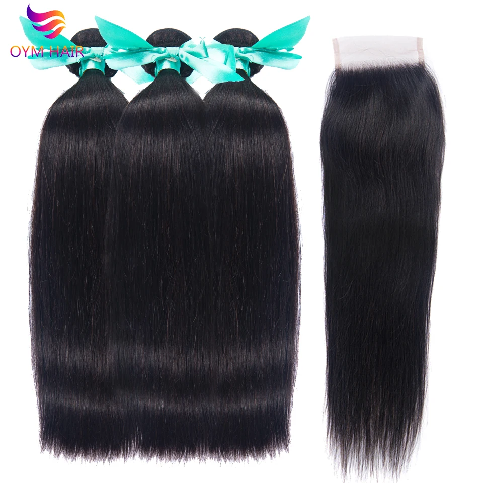 Best Chance of OYM HAIR Peruvian Straight Hair Bundles With Closure Non-Remy Human Hair Bundles With 5x5 Lace Clos