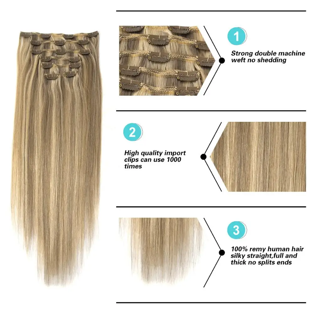 Cashback Neitsi Double Drawn Remy Clip In On Human Hair Extensions 20" 24" 7pcs 16 Clips 8 Colors Natural Straight Clip Ins Fast DeliveryEarn 9% Cash Back, VALID UNTIL TOMORROW