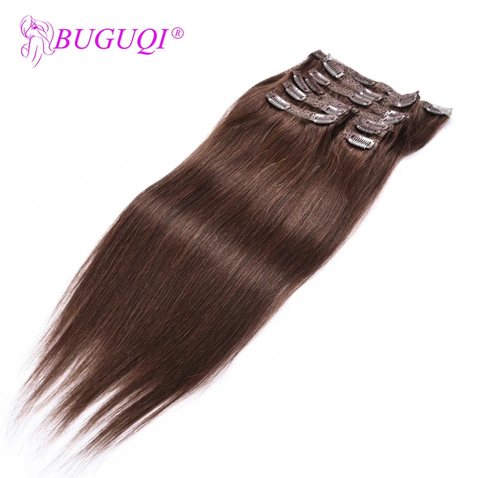BUGUQI Hair Clip In Human Hair Extensions Mongolian #4 Remy 16- 26 Inch 100g Machine Made Clip Human Hair Extensions