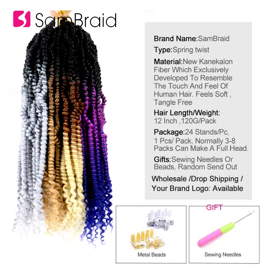Related Product for SAMBRAID 12Inch Spring Passion Ombre Colors Bomb Twist Hair for Pre-looped Synthetic Crochet Braidi