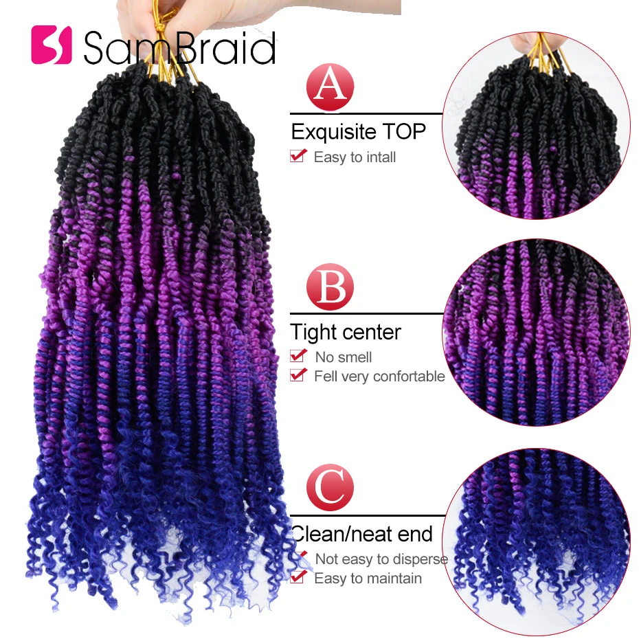 SAMBRAID 18Inch Passion Spring Twists Synthetic Braiding Hair Extensions Ombre Crochet Braids Fiber Pre looped Fluffy Twists