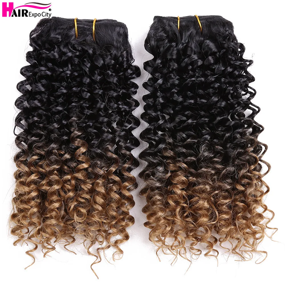 Limited Price of 8"Jerry Curly Bundles Ombre Hair Bundles Synthetic Hair Weave Extensions For Women Heat Resistant F