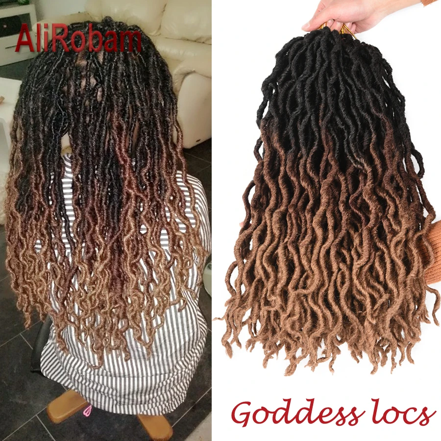 Price AliRobam Woman Goddess Faux Locs Curly Crochet Hair Ombre Black Brown Synthetic Braiding Hair Extensions 24Strands/PackGet 55% OFF, VALID UNTIL TOMORROW