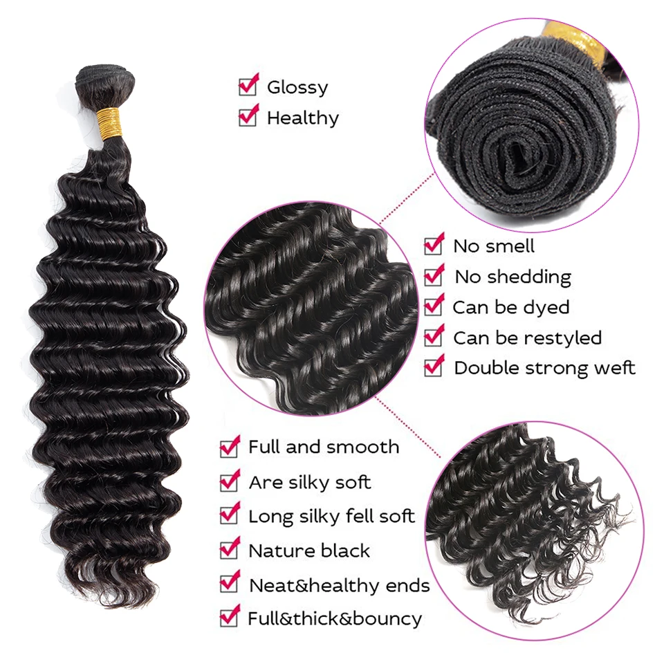 Related Product for HairUGo Natural Color Hair Brazilian Deep Wave Bundles With Closure Human Hair Extensions Non Remy