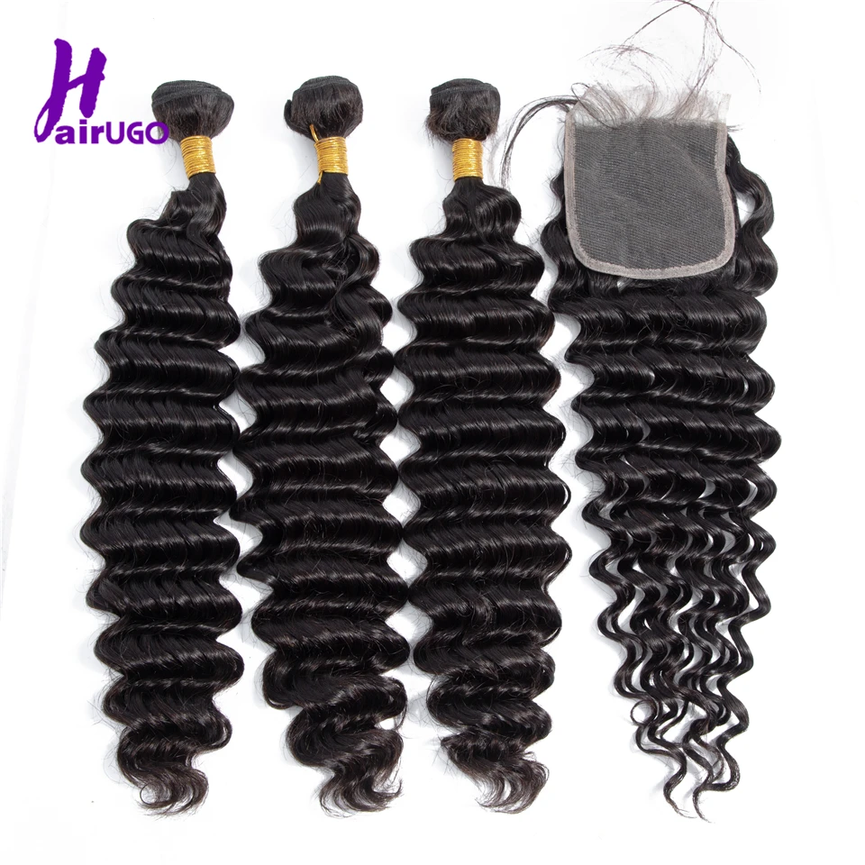 Special Offer of HairUGo Natural Color Hair Brazilian Deep Wave Bundles With Closure Human Hair Extensions Non Remy