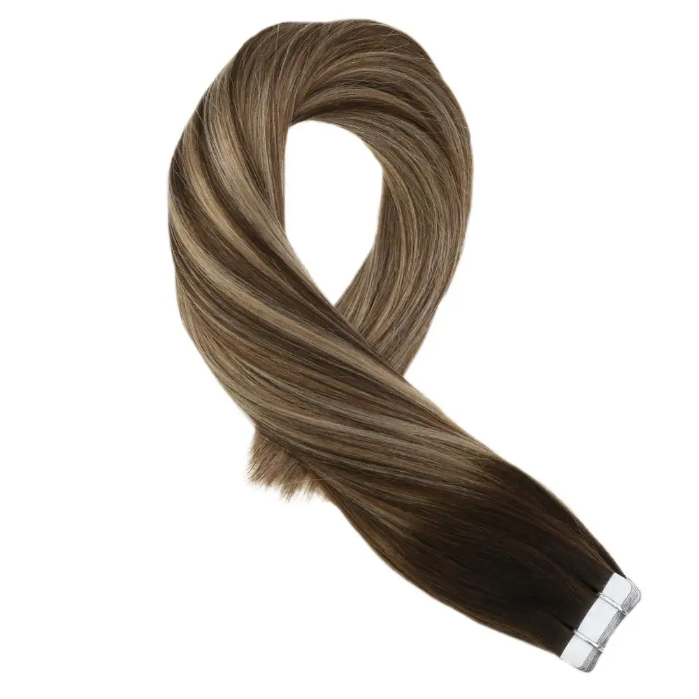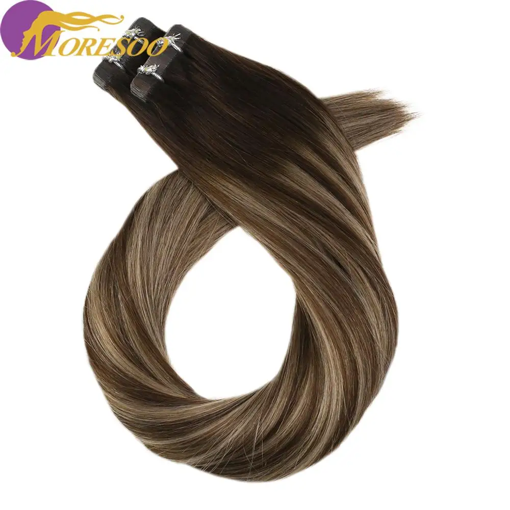 Moresoo Tape in Human Hair Extensions Balayage Ombre Color 12-24 inch 30-100g/pack Machine Remy Skin Weft Hair Extensions