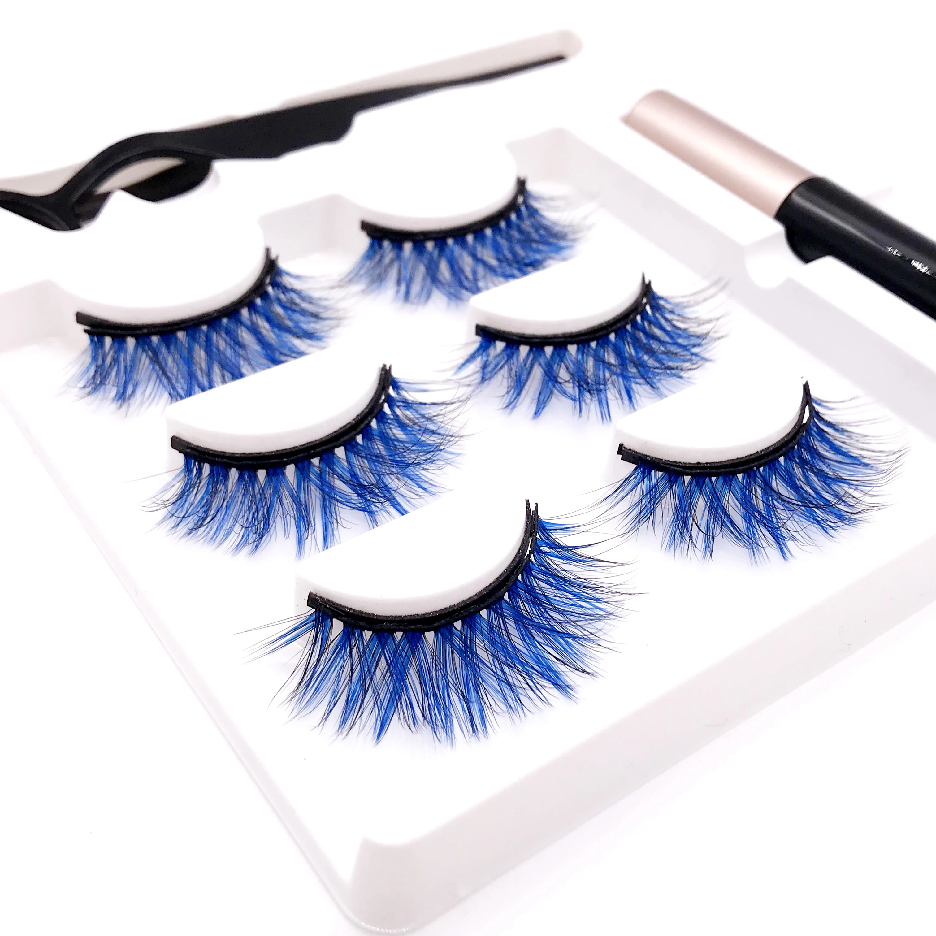 Related Product for New 3D 3 Pairs Gradient Color Magnet Fake Eyelash Set Multicolor Optional Waterproof Long Lasting M