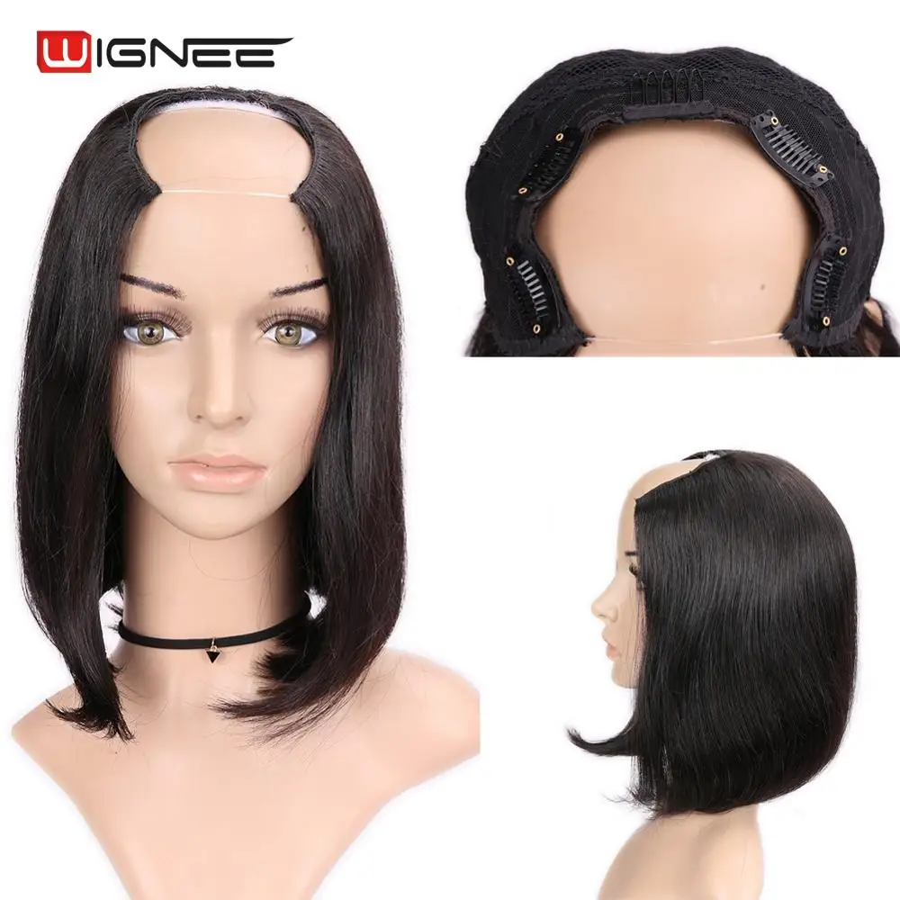 Related Product for Wignee U Part Half Wig Brazilian Remy Human Hair for Black Women Short Straight Hair Bob Wig Hair E
