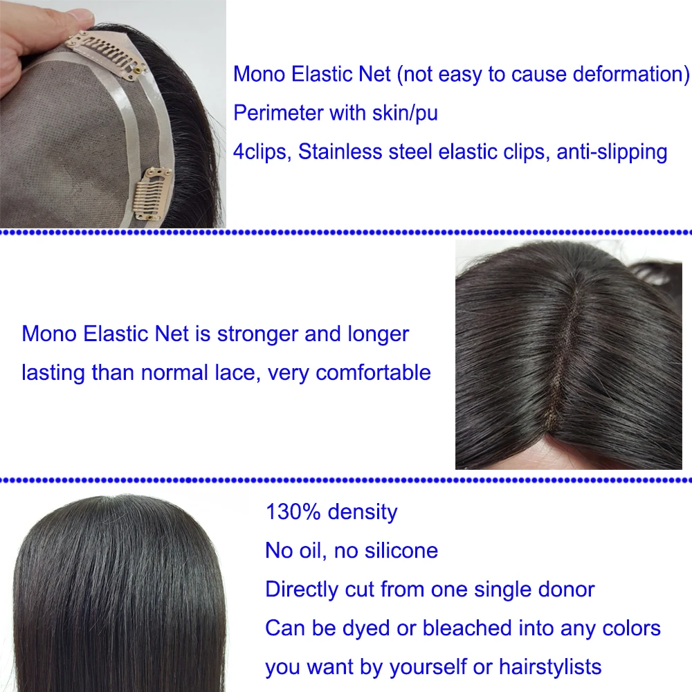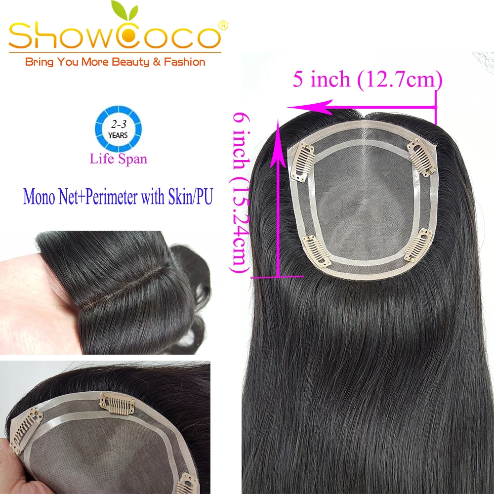 Related Product for Clip in Hair Piece Toupee 5*6 Toupee Mono PU Human Hair Extensions Virgin Hair 130% Density Showcoc
