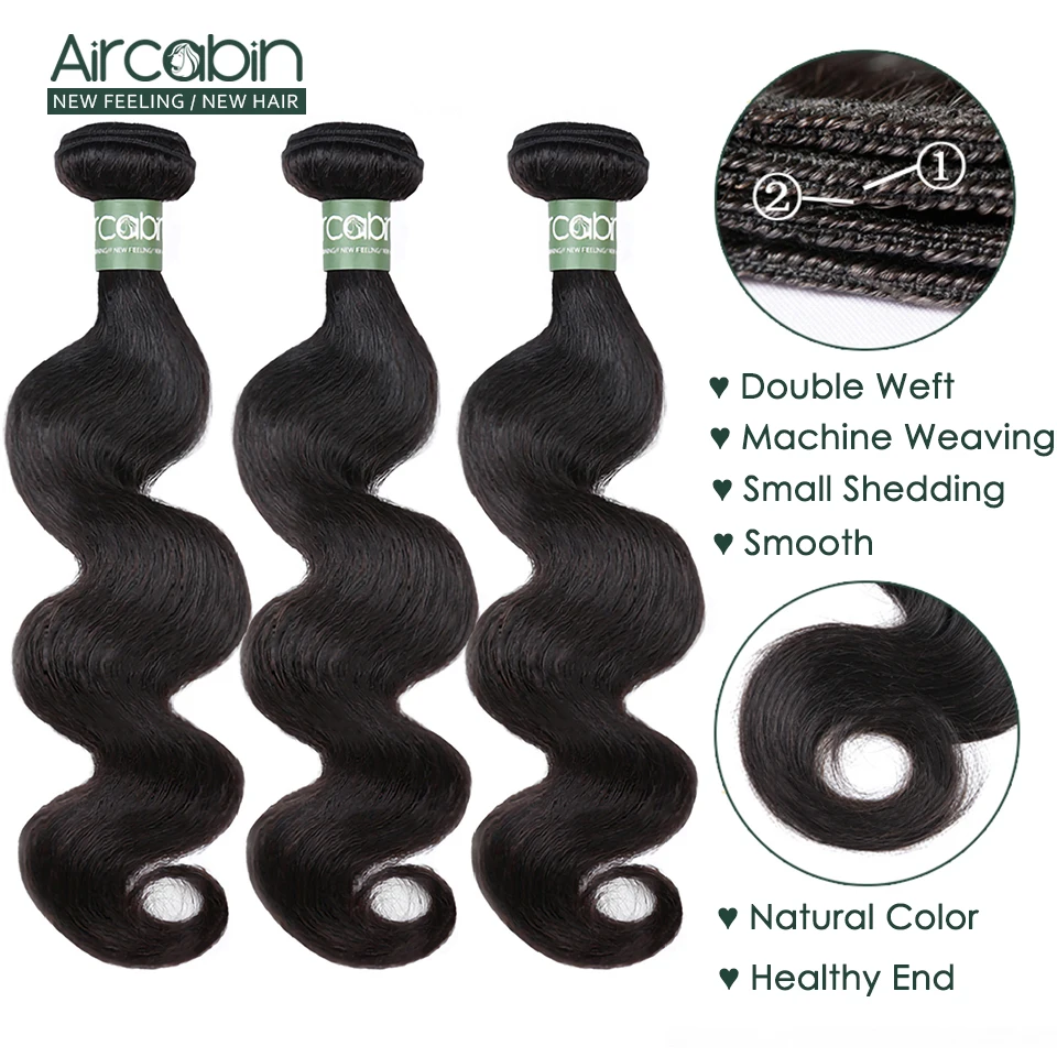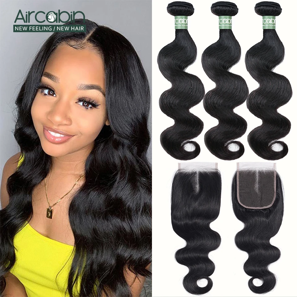 Cheap Price of Aircabin Body Wave Bundles With Closure Brazilian Remy Human Hair Double Weft Bundles Extensions Me
