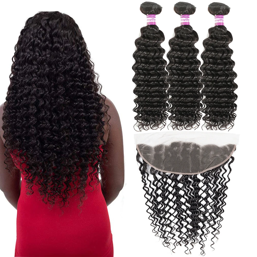 Great buy Peruvian Deep Wave Bundles With Frontal 13*4 Human Hair Weave Bundles With Lace Frontal Non-Remy Hair Extensions Natural ColorGet 45% OFF, VALID UNTIL TOMORROW