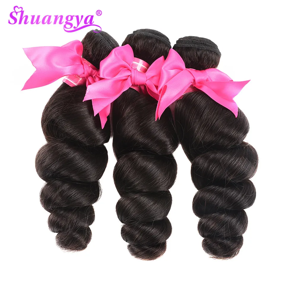 .image for Shuangya Hair Peruvian Hair Weave Remy Hair Bundles 3 Bundles Loose Wave Hair 100% Human Hair Bundl