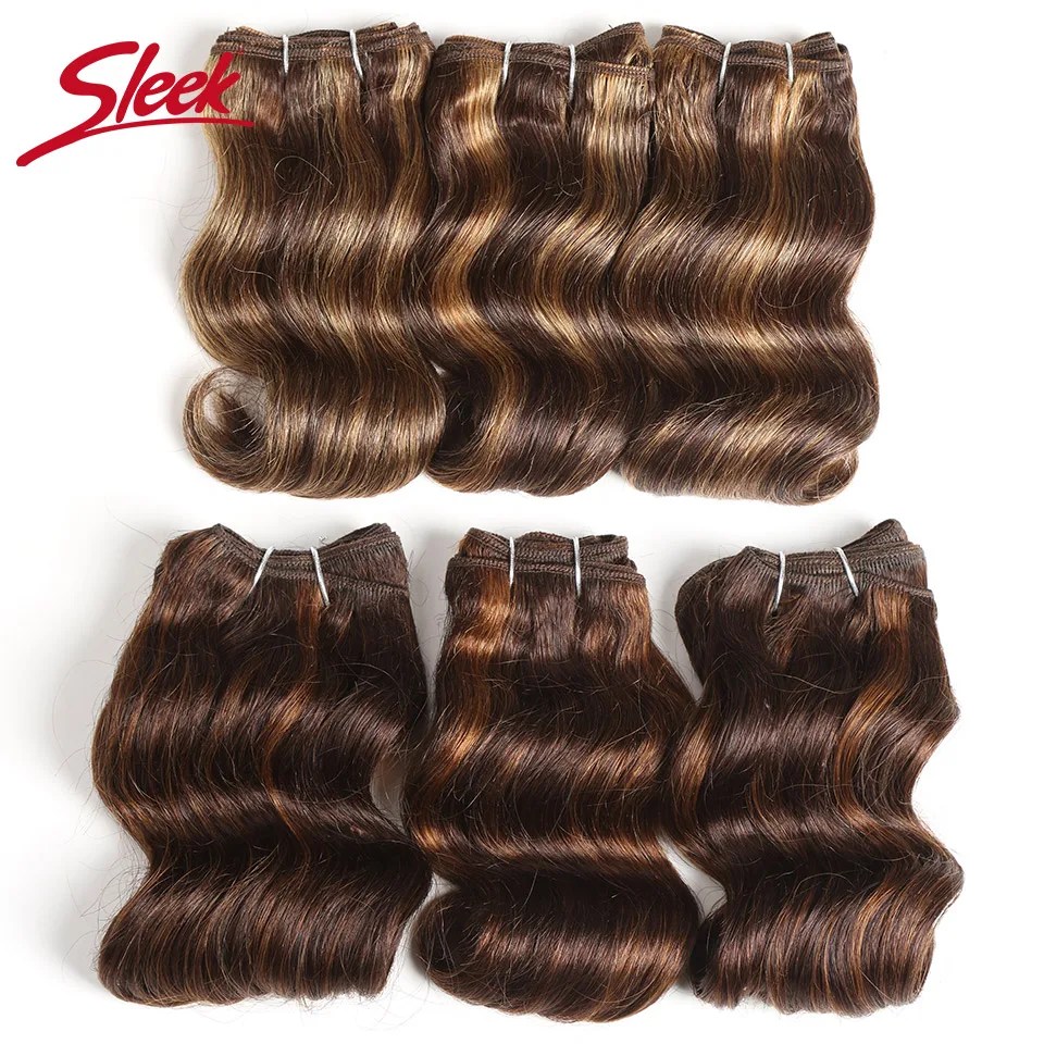.image of Sleek Hair Brazilian Body Wave Remy Human Hair Double Drawn Piano Color 4/27# 27 Color 30# Burg# Bu