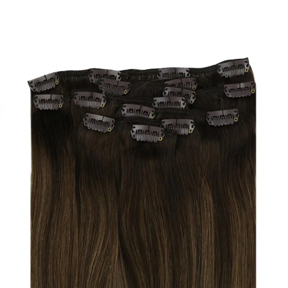 Buy VeSunny Double Weft Clip in Hair Extensions 100% Real Human Hair 7pcs 120gr Balayage Ombre Dark Bro Right Here and Right Now Just for USD US $45.42, Price will be rise up at any time without notification and I cant guaranted that the stock is still available tommorow or next hour. So Please Save It Now!