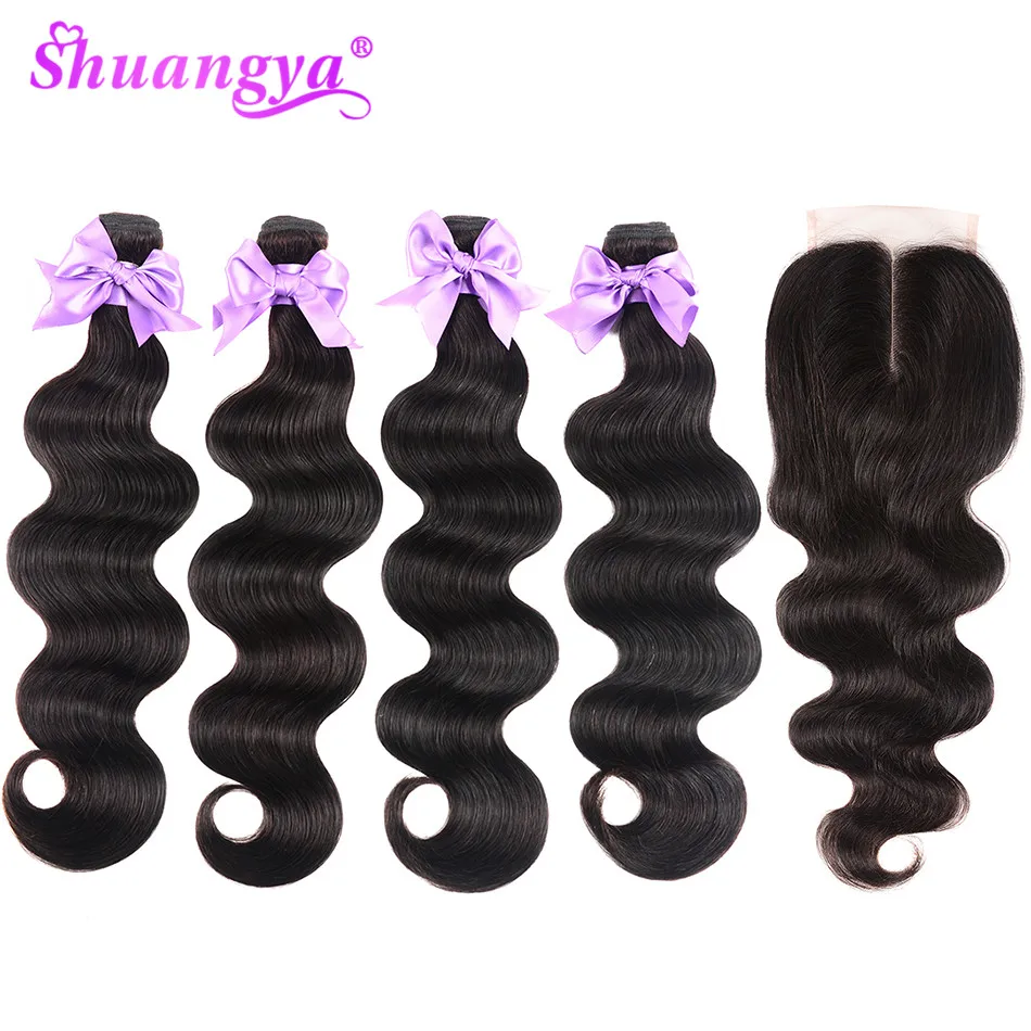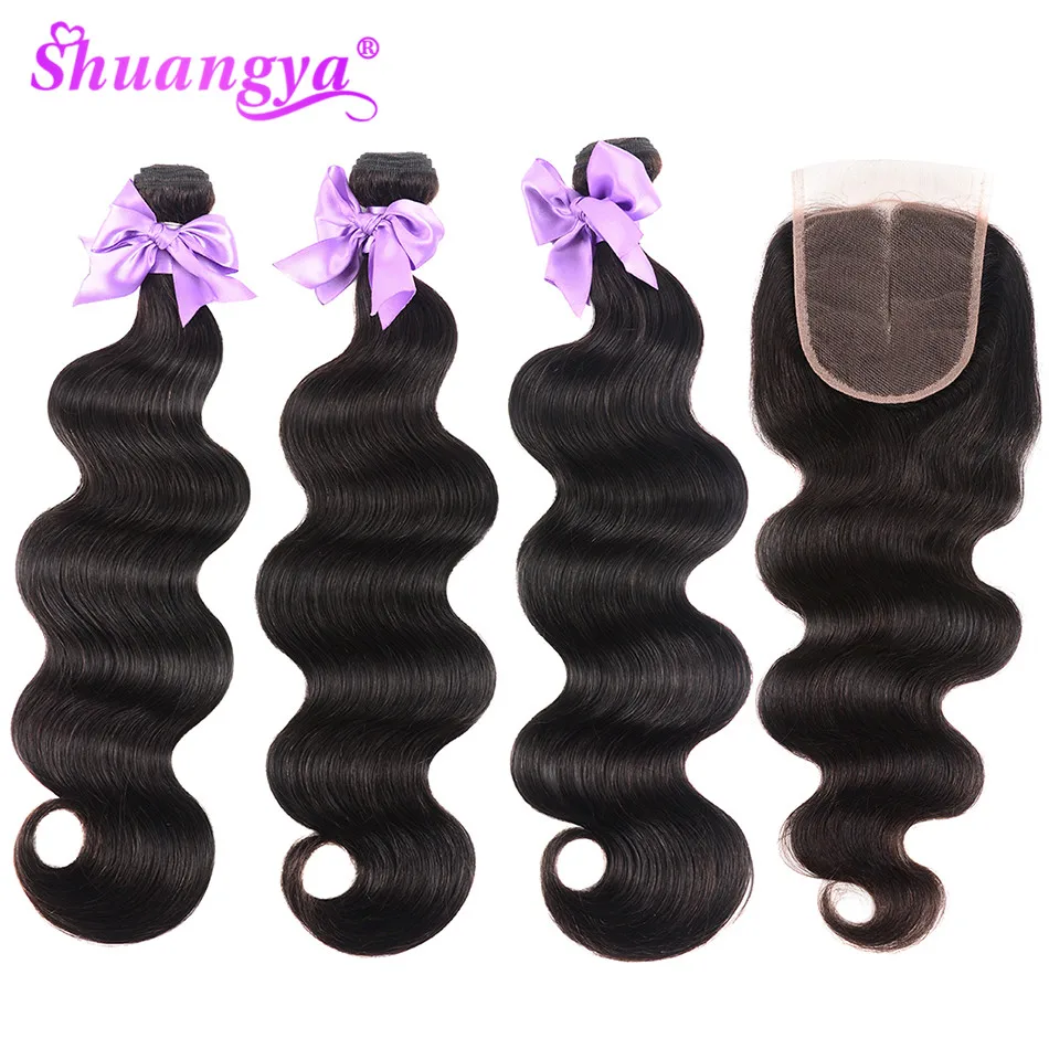 Shuangya Indian Body Wave Bundles With Closure 3 Bundles With Closure Remy 100% Human Hair Bundles With Closure Hair extension