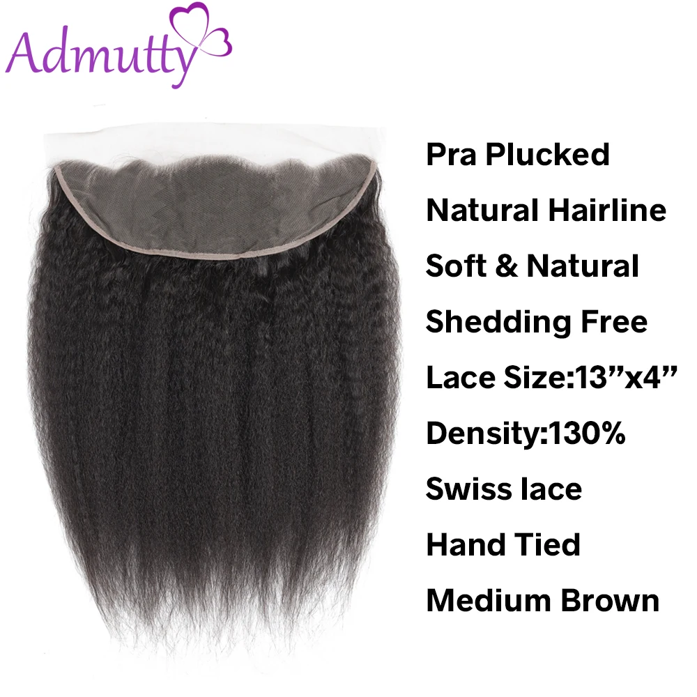 .image for Admutty Hair Indian Kinky Straight Hair Bundles With Lace Frontal 13*4 Remy Hair Hair Bundles With