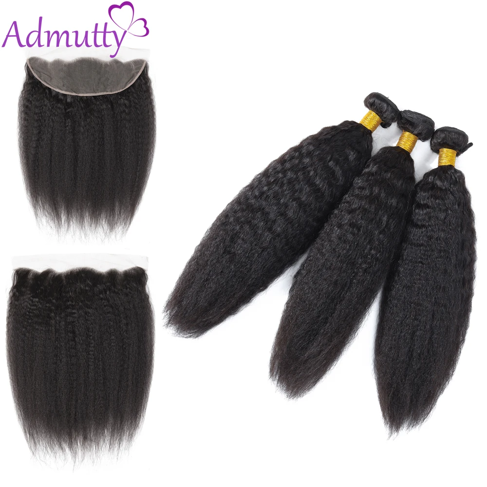 Special Price for Admutty Hair Indian Kinky Straight Hair Bundles With Lace Frontal 13*4 Remy Hair Hair Bundles With