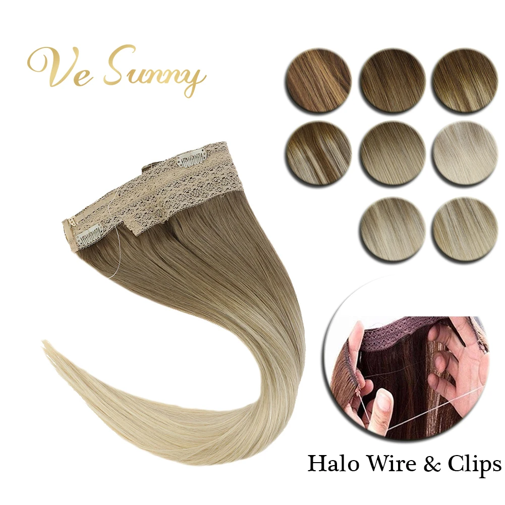 Limited Price of VeSunny Invisible Wire Halo Hair Extensions Human Hair Flip in Fish Line with 2 Clips on Balayage L