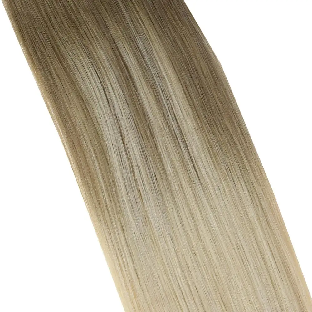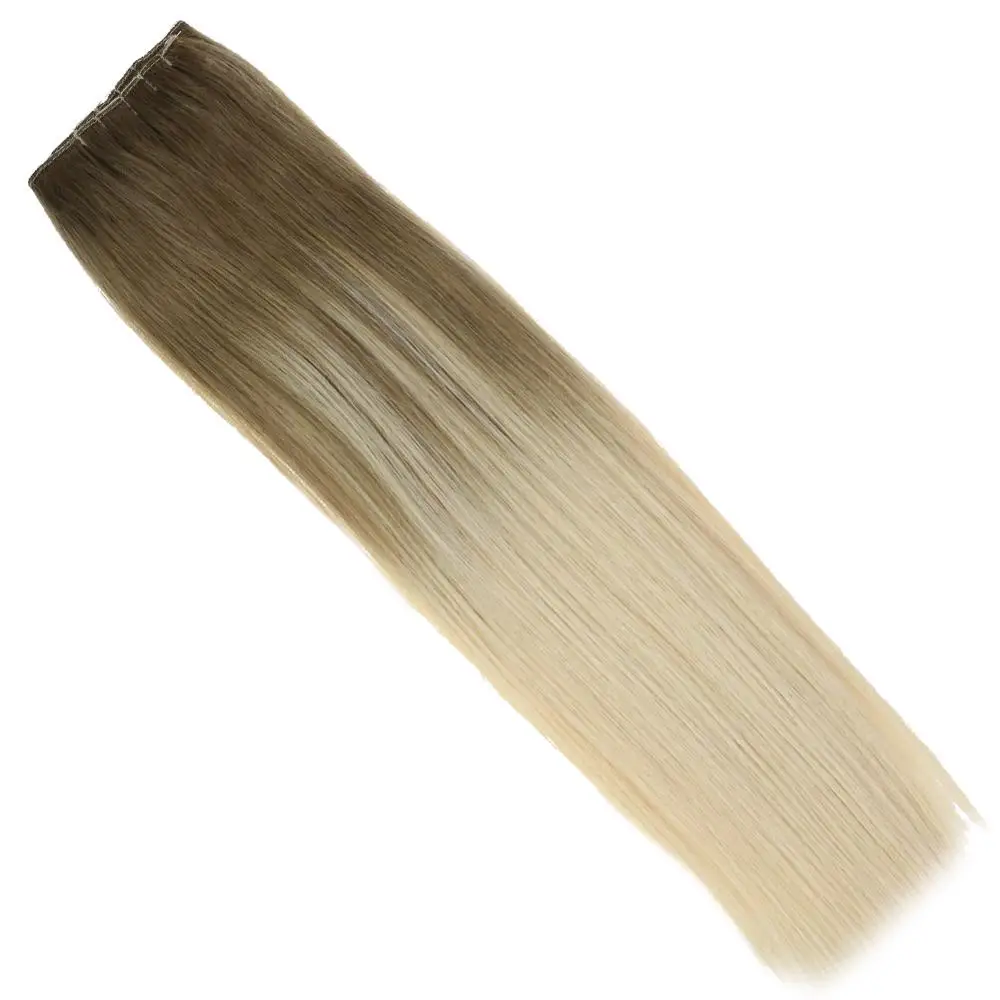 .image of VeSunny Invisible Wire Halo Hair Extensions Human Hair Flip in Fish Line with 2 Clips on Balayage L