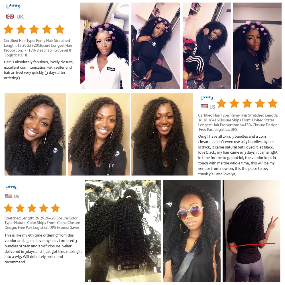 Good Chance of BEAUDIVA Brazilian Hair Weave Bundles Remy Hair Bundles 3Pcs With Closure 4*4 Kinky Curly Bundles W