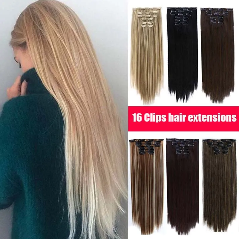 Good Chance for LUPU 24 Inch Long Straight Hairpieces16 Clips In Hair Extensions High Tempreture Fiber Synthetic 6P