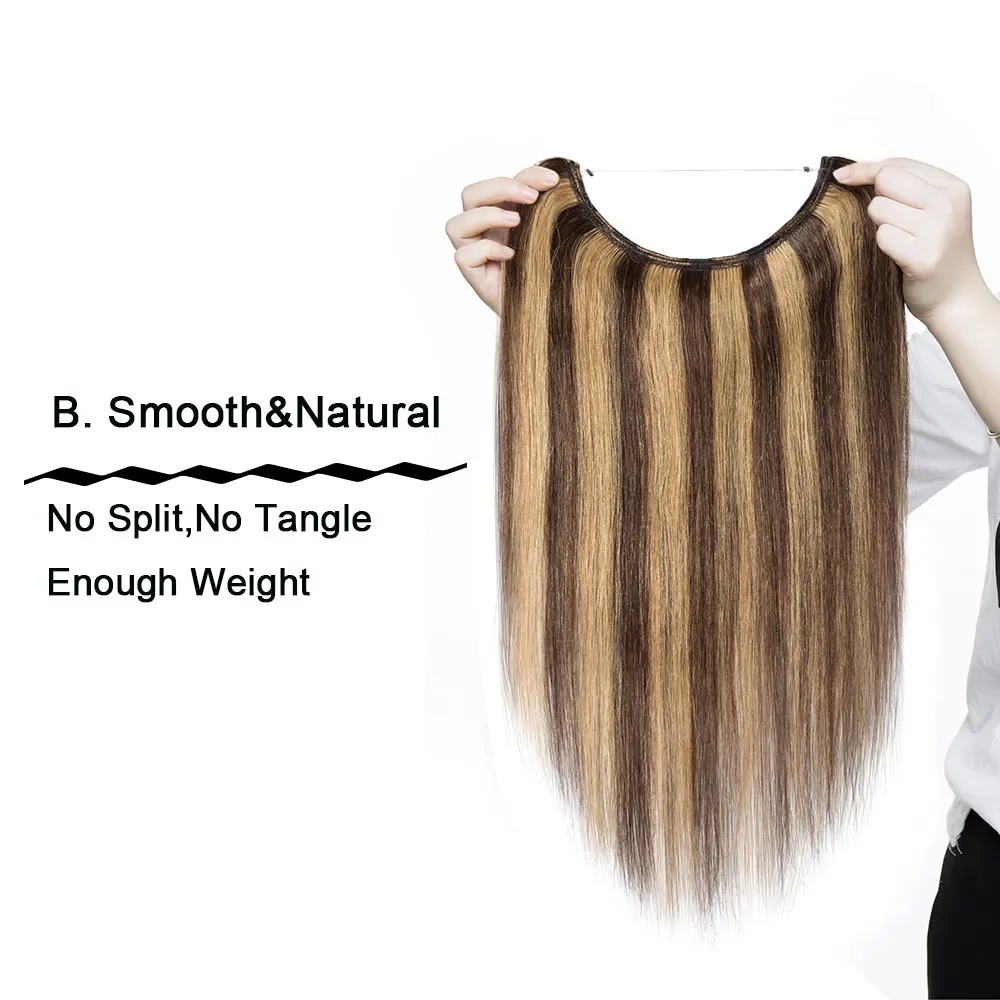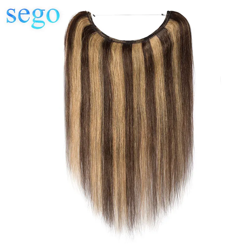 SEGO 16"-24" 60g-80g Fish Wire Straight Human Hair Extensions Halo Brazilian Non-remy Invisible Flip in Human Hair Extensions