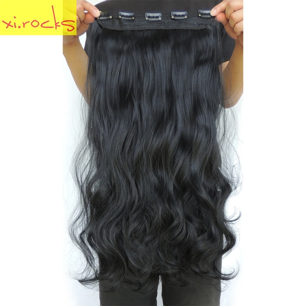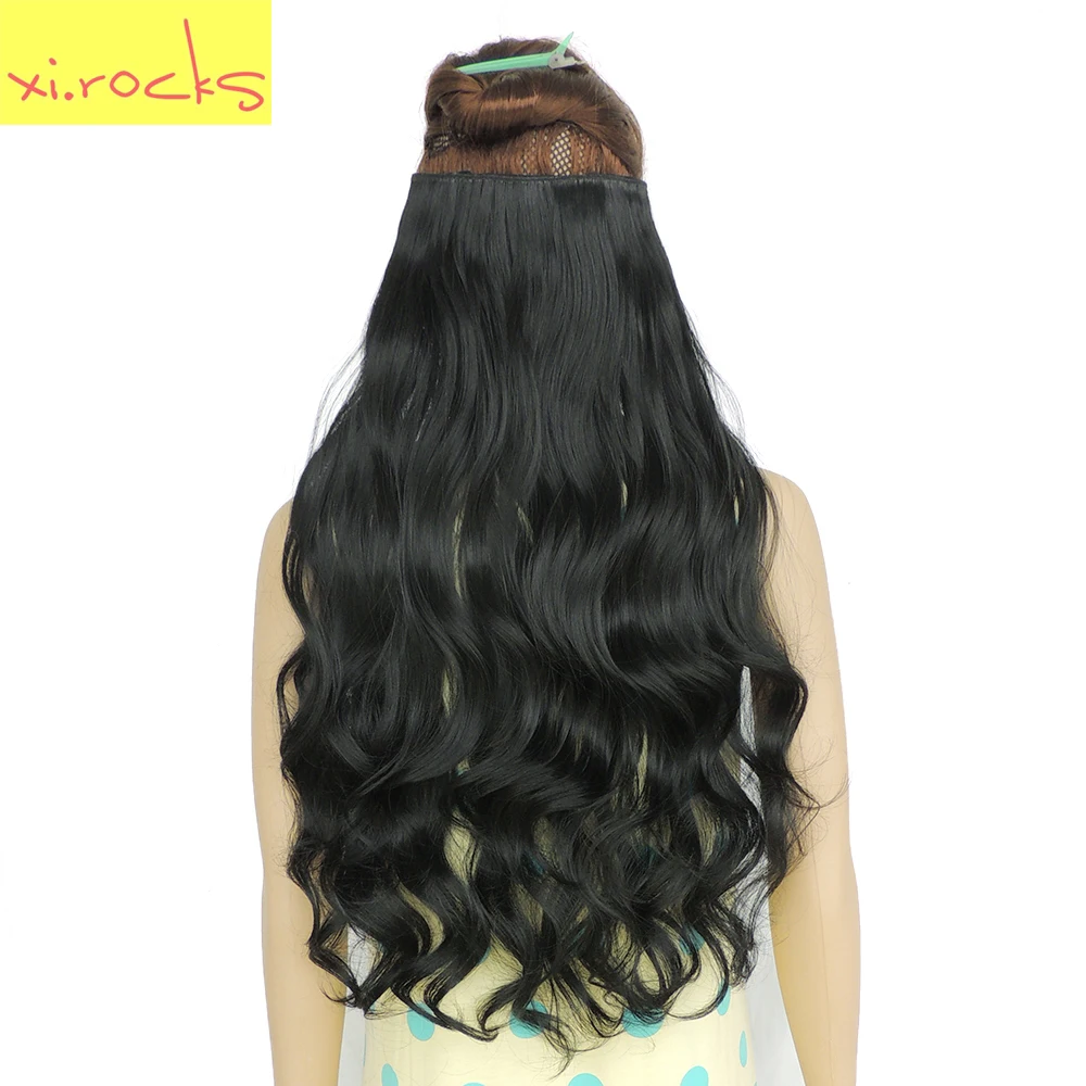 wjj12070 1piece Xi Rocks wig Synthetic Extensions Clip In Hair Extensions For Black Women Wavy Long Extensions