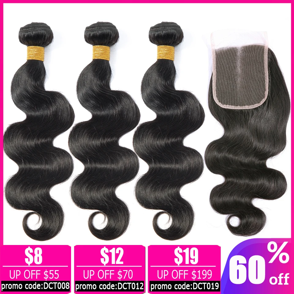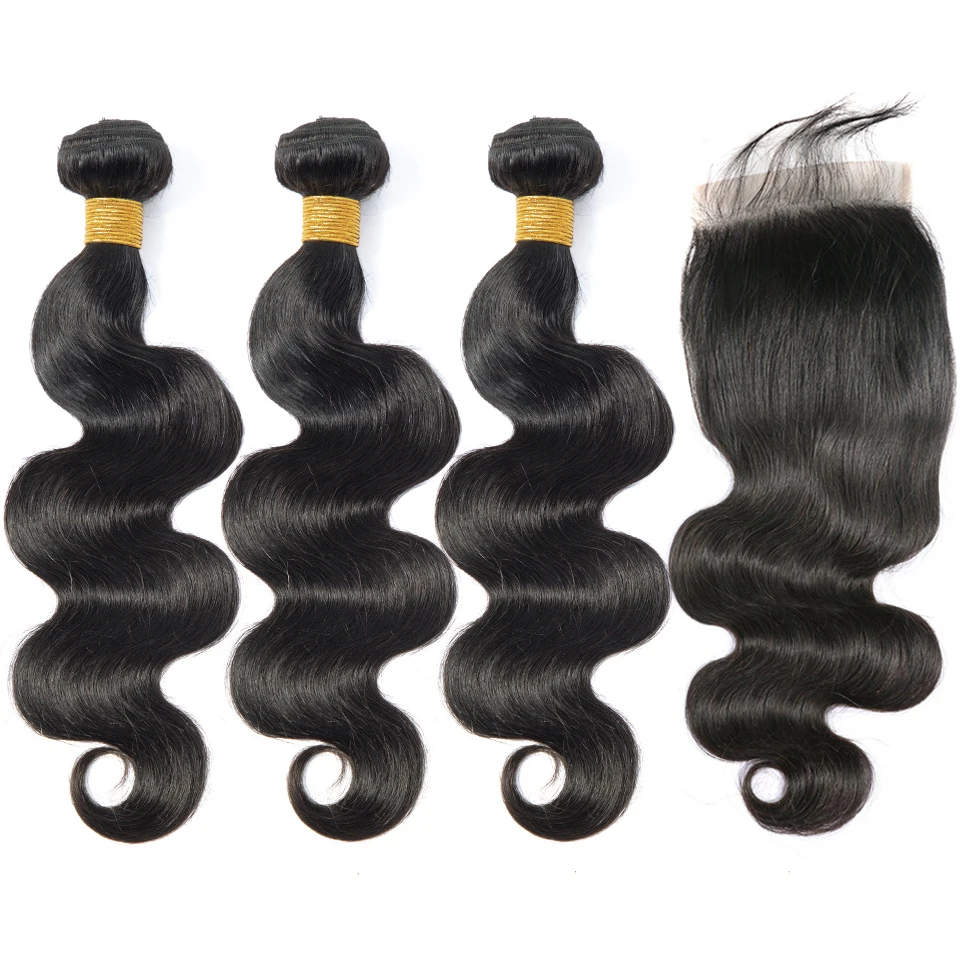 LEVITA body wave bundles with closure human hair 2 4 bundles with closure non-remy hair extension Brazilian hair weave bundles