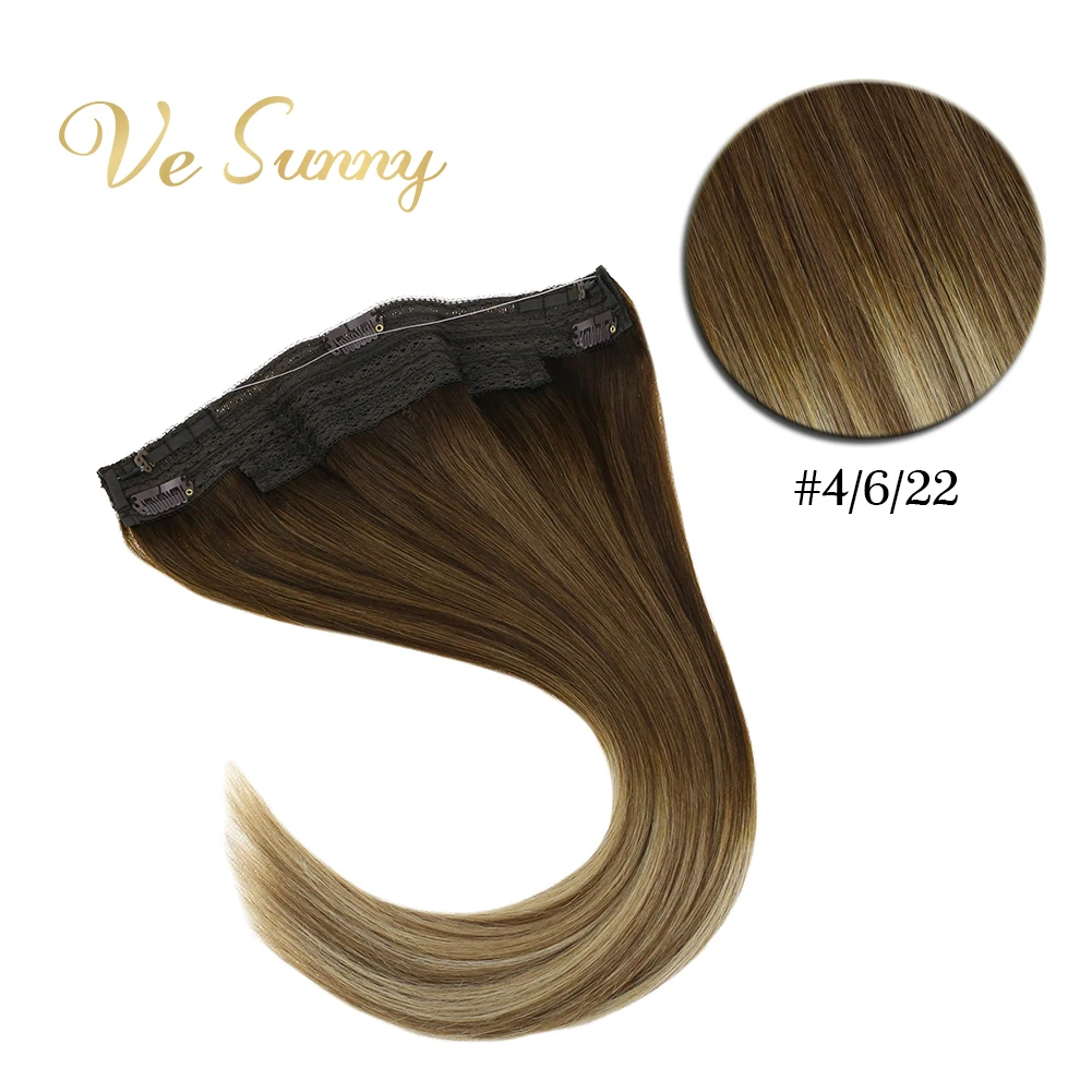 Limited Price of VeSunny One Piece Invisible Halo Hair Extensions Human Hair Fishing Flip Wire with 2 Clips Balayage