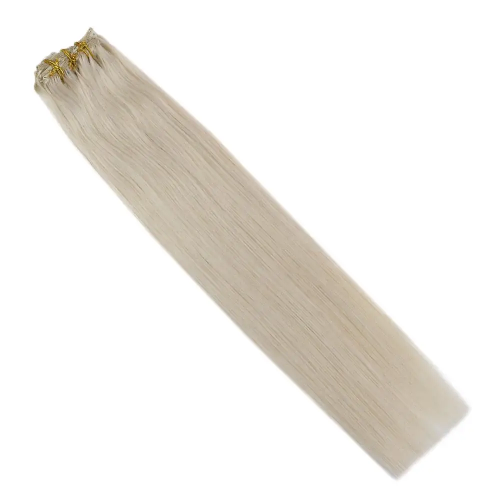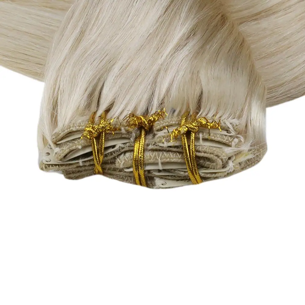 Limited Price for Full Shine 9 Pcs 100g Clip in Extensions Human Hair Blonde Color Clip in Hair Double Wefted Machine