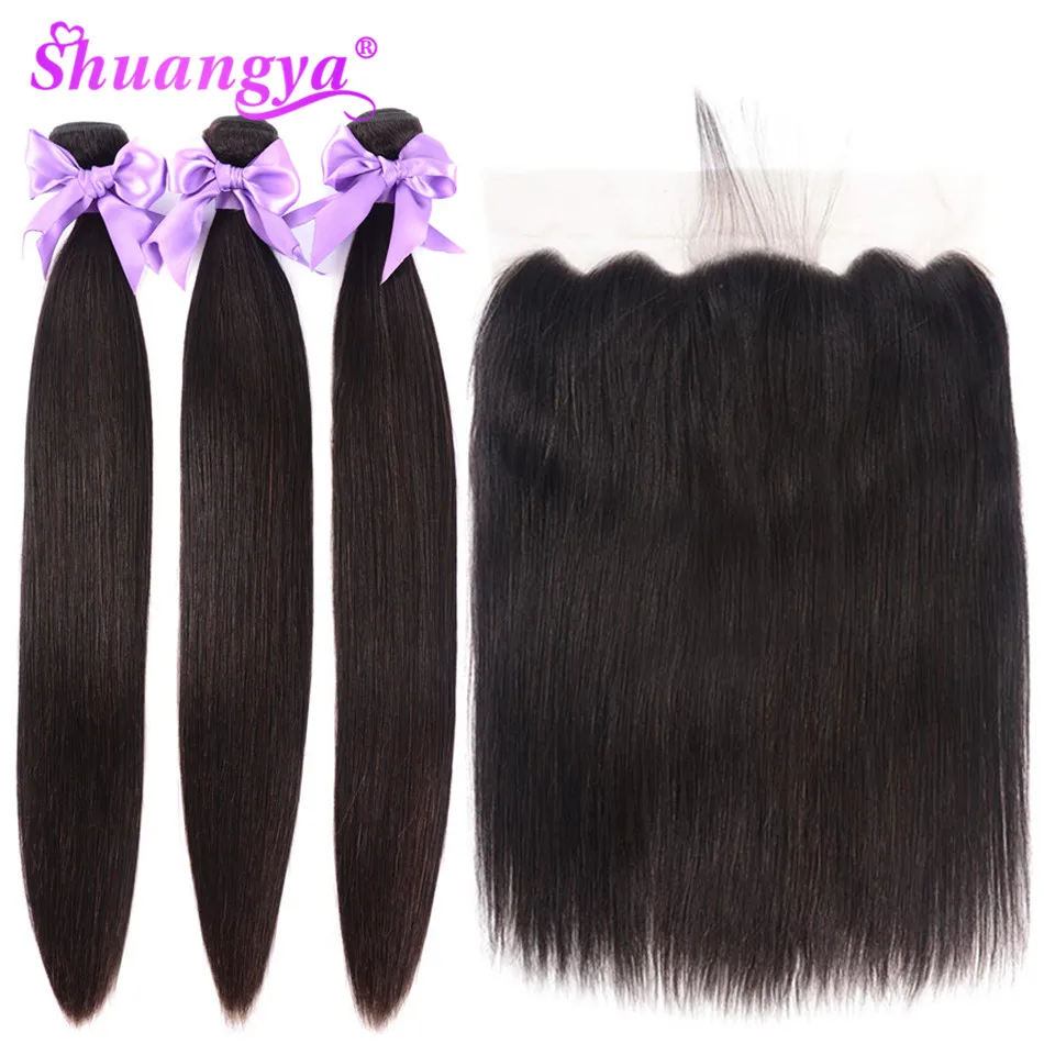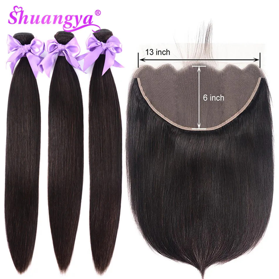 Shuangya hair Straight Bundles 13x6 Lace Frontal With Bundles Remy Brazilian Hair Bundles With Frontal Human Hair extensions