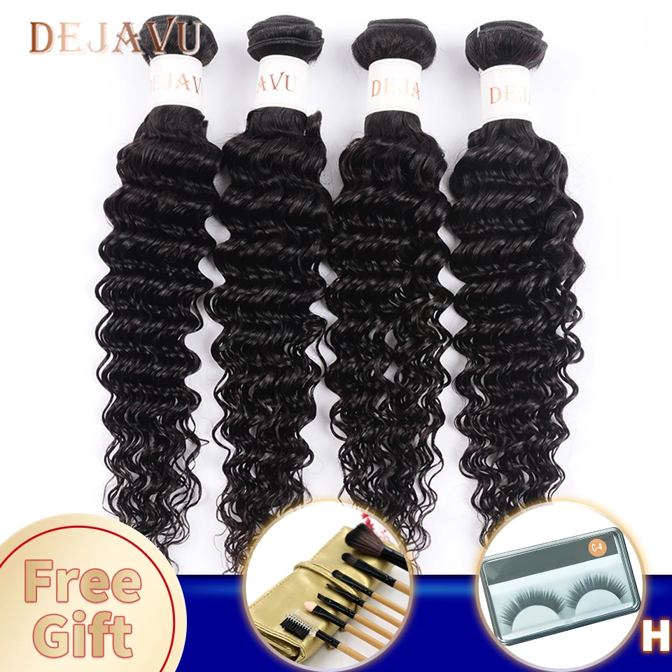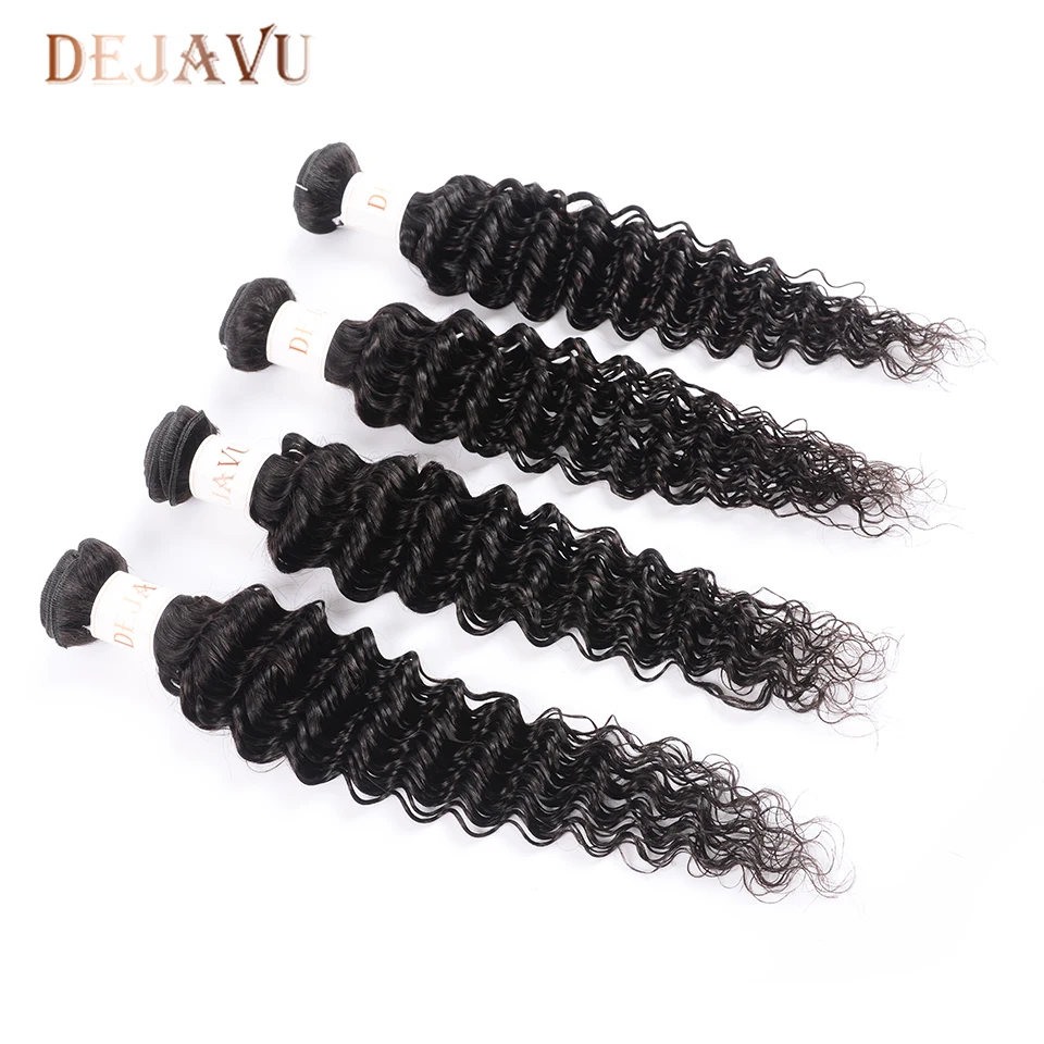 Good Offer for DEJAVU Deep Wave Bundles Non-Remy 4 Human Hair Bundles 8-28inch Brazilian Hair Weave Bundles Natura