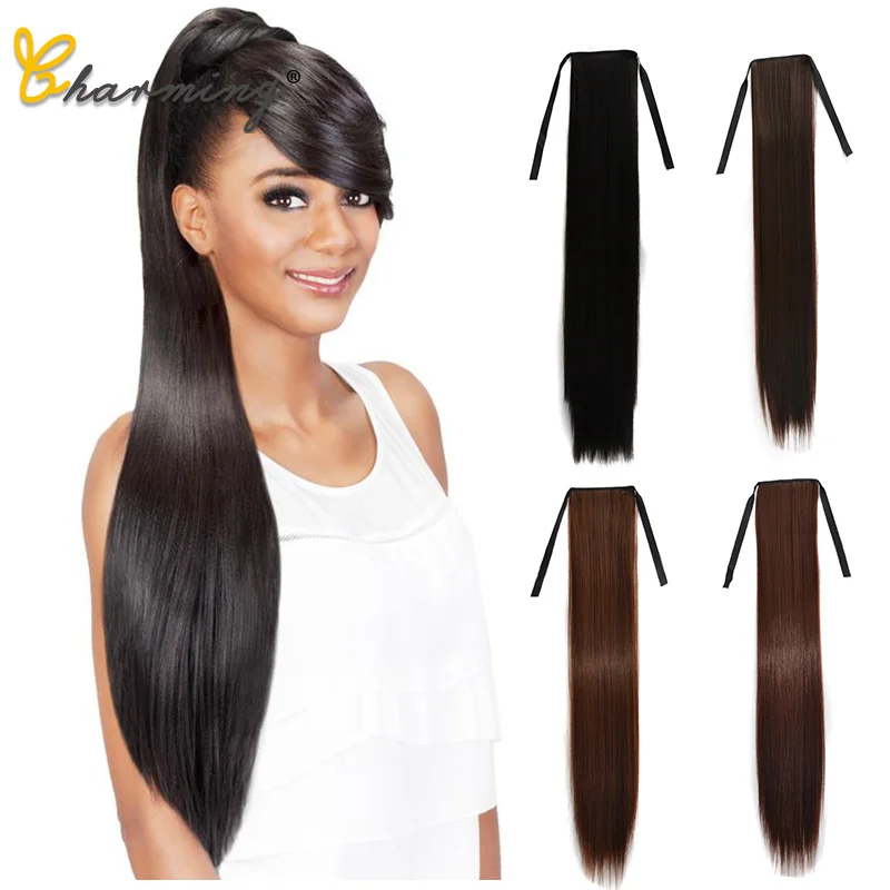 Special Price of CHARMING Long Straight Drawstring Synthetic Ponytail Black/Brown Heat Resistance Hairpiece Clip In